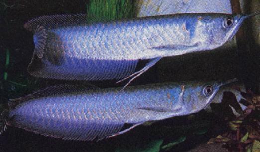 Позднее, по мере взросления, он меняет окраску, становясь похожим на серебряную аровану (плавники чуть темнее). Иногда существуют очень красивые вариации, называемые голубыми арованами.