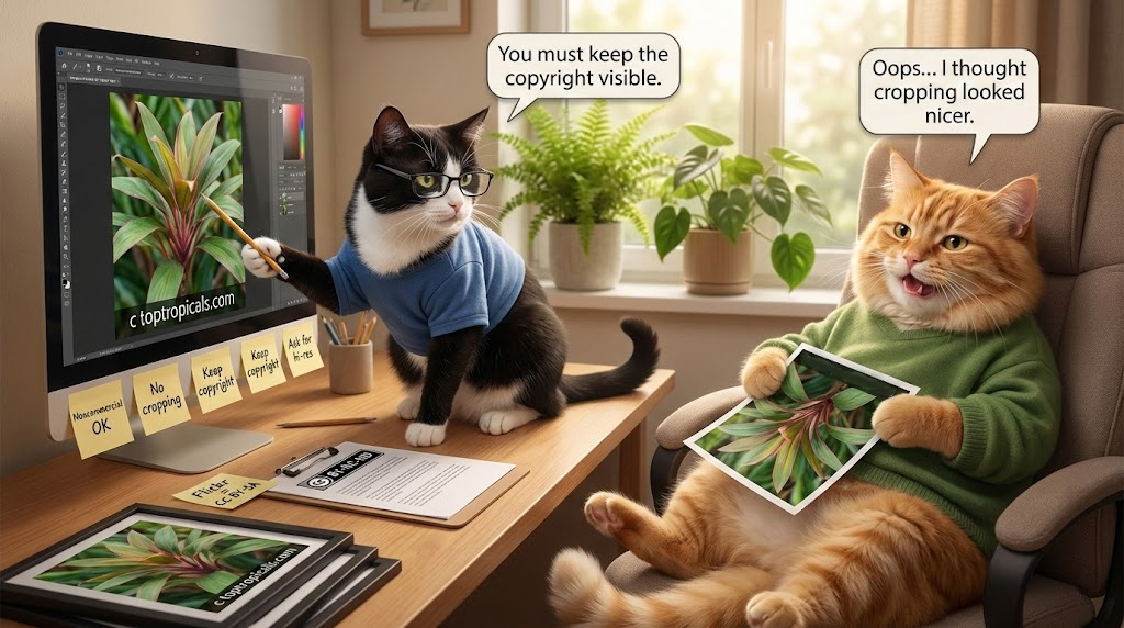 - Images on TopTropicals.com: Licensed under CC BY-NC-ND 4.0. Noncommercial use only, no derivatives, attribution required.